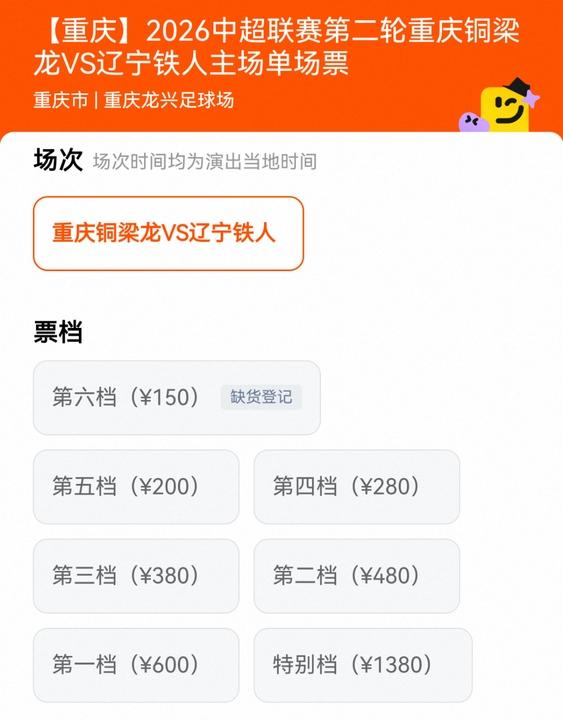 如果说海报争议是“不懂情怀”,那高到离谱的球票定价,就是球迷口中“割韭菜”的实锤。这场对阵同为升班马辽宁铁人的比赛,既非川渝德比,也非争冠焦点战,球票却开出了150元至1380元的7个档位,最高票价直接对标北京国安、上海申花等老牌豪门。更讽刺的是,网络订票平台显示,仅150元的低价票被一抢而空,其余高价票均有大量剩余,赤裸裸地说明球迷对这个定价的不认可。要知道,去年铜梁龙踢中甲时,主场最低票价仅38元,最贵也不过118元,如今升超后票价直接翻了近十倍,难免让一路追随的死忠球迷感到被收割。